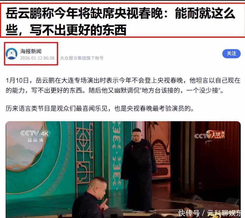 接下来他会怎么走,没有人能给答案,只知道这一刻,他没有被推着往前,而是自己踩住了脚,这种停顿,在当下显得格外清晰。信息来源:岳云鹏回应不上2026年央视春晚,能耐就这么些,写不出更好的东西--中原网知名相声演员:将缺席央视春晚--澎湃新闻,吉林日报