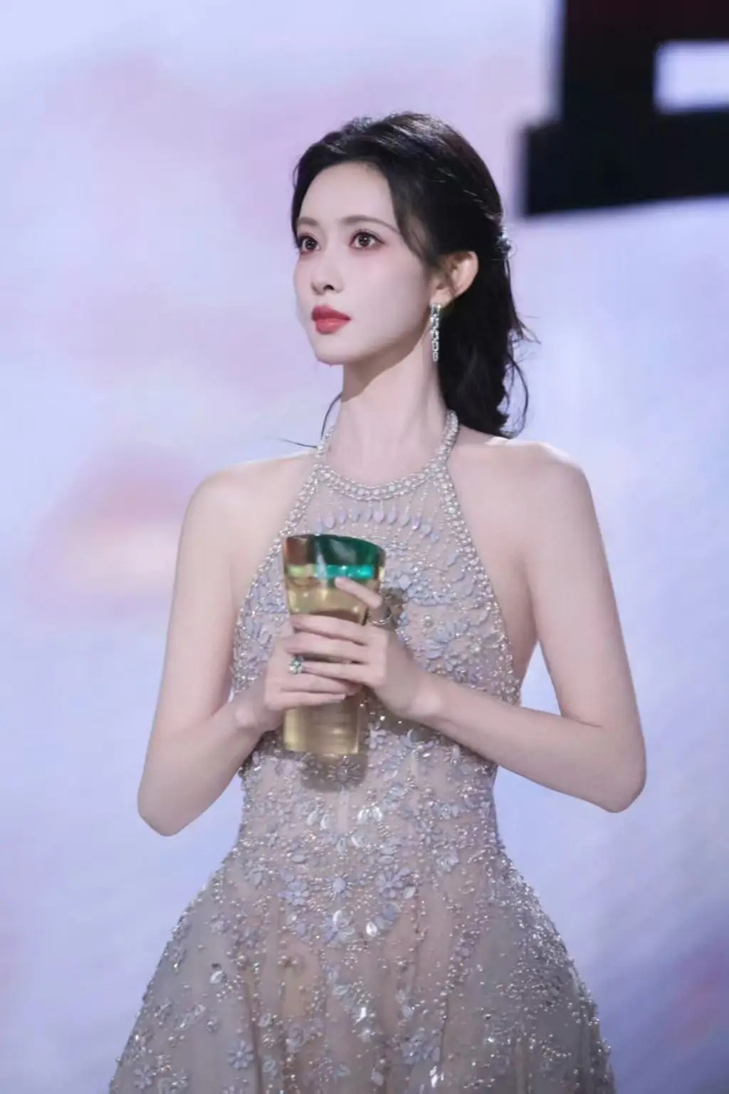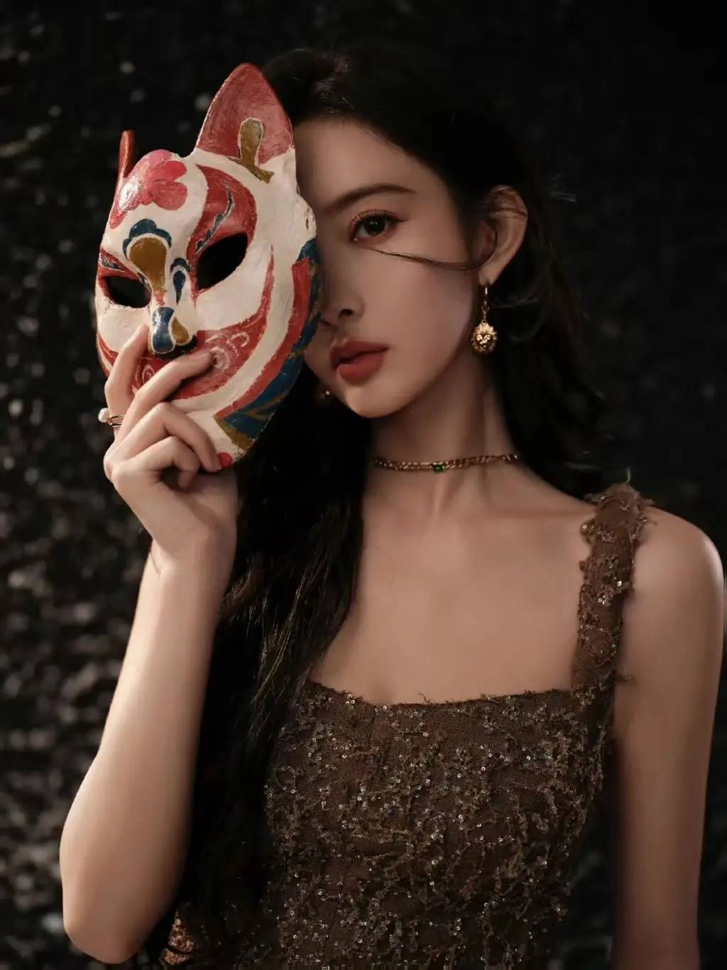 家人们快看孟子义最新造型!简直是行走的画报,从神秘狐狸面具到金色战裙,每一套都美到让人尖叫,这姐的时尚感也太绝了吧!先说她戴狐狸面具那张,氛围感直接拉满!深棕色亮片吊带裙,上面全是细碎的闪片,在黑暗里像把星星穿在了身上。手里举着红白相间的狐狸面具,只露出一只眼睛,又纯又欲,神秘感直接拉满!金色狮子耳环和锁骨链相呼应,细节感满分,这谁顶得住啊!金色抹胸裙那套更是封神!整个裙子像用黄金打造的一样,blingbling闪到睁不开眼。抹胸设计露出精致的锁骨,腰部的镂空剪裁超级大胆,若隐若现的肌肤简直性感犯规!头上戴的金色树叶发箍,活脱脱一个古希腊女神,抬手的姿势又飒又美,气场直接两米八!水晶裙那套简直是仙女下凡!全身上下镶满了细碎的水晶,在灯光下闪得像银河。挂脖设计露出修长的天鹅颈,手里拿着奖杯的样子,又美又飒,妥妥的红毯女王!最绝的是她的妆容,眼尾微微上挑,红唇配水晶裙,气场全开!红色皮草那套更是A到爆!酒红色亮片裙外面披了件同色系皮草,又贵气又性感。项链和耳环都是红色宝石,和裙子完美呼应。她抬手比"嘘"的姿势,眼神凌厉又带着点小俏皮,这反差感简直让人疯狂心动!不得不说孟子义的可塑性也太强了!既能驾驭神秘的狐狸面具造型,又能hold住华丽的金色战裙,甚至连难驾驭的红色皮草都能穿出自己的风格。她的眼神也超级有戏,时而凌厉时而温柔,每个表情都充满故事感。看完这组照片我直接路转粉!姐姐这状态也太好了吧,完全就是行走的衣架子,什么风格都能轻松驾驭。这种又美又飒的红毯女王风格真的太适合她了,求求多拍点这样的大片,我的眼睛需要这样的视觉盛宴!