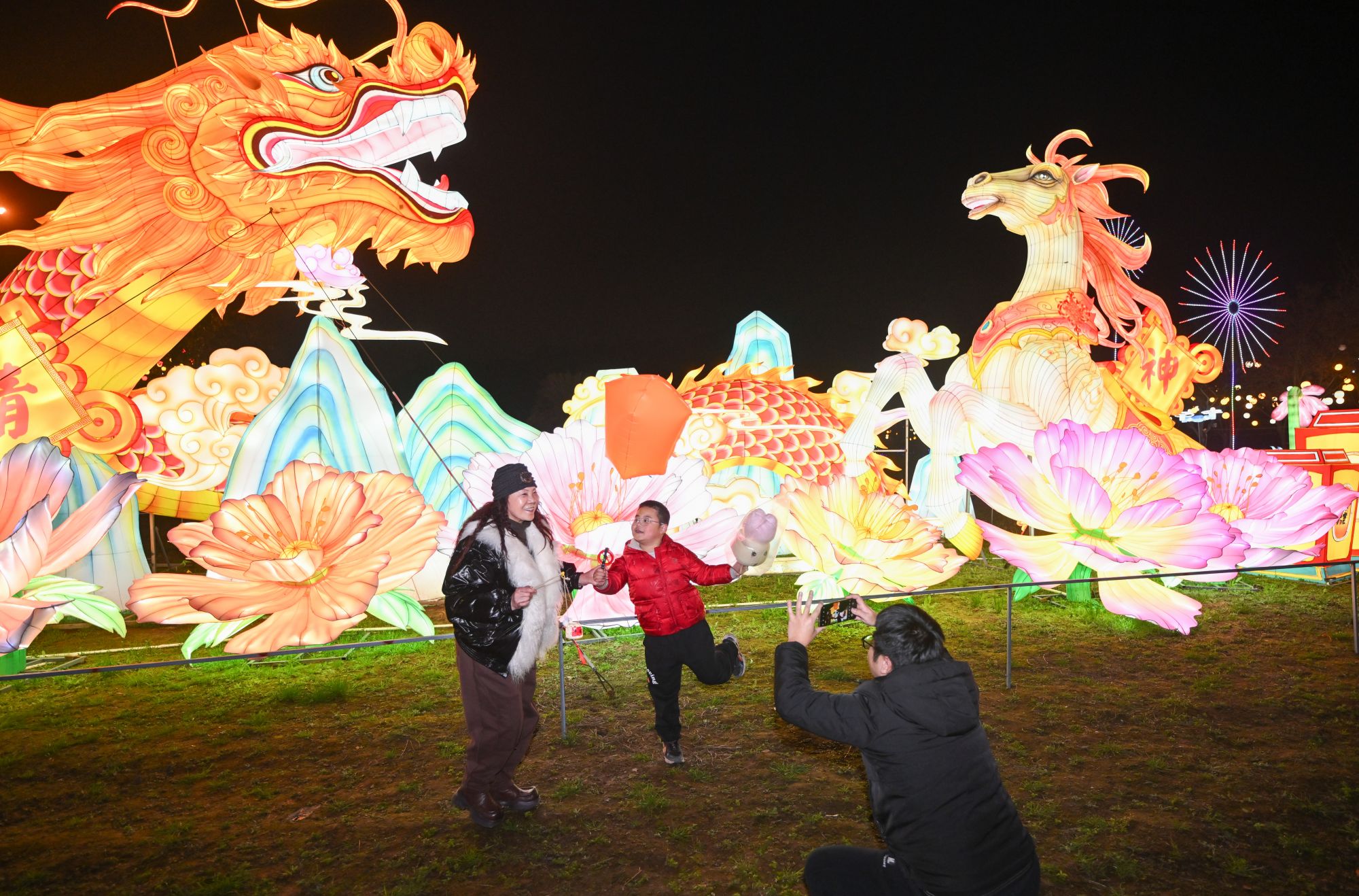 在铜梁,铜梁第十二届龙灯艺术节主会场,奇彩梦园以“龙韵新灯 醉美铜梁”为主题进行升级,龙灯规模较去年翻倍,呈现4组大型主题花灯与43组中型特色灯组。花灯设计师贺志龙介绍,景区大门设计为“双龙戏珠”,内部灯组则划分为新年传统、非遗技艺、童风童趣、奇幻未来四大板块。这场灯会致力于为不同年龄阶段人群打造相应灯组与打卡点,让人们在沉浸式光影空间中,感受中华龙文化的魅力。