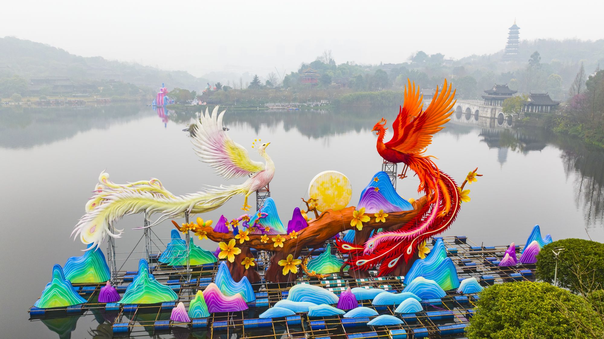 ▲重庆园博园,2026重庆市新春灯会——“禧欢霓”园博园大型水上灯会现场,来自重庆、自贡两地的400余名匠人正并肩赶工,一盏盏色彩斑斓的灯组令人赏心悦目,新春氛围感扑面而来。(无人机照片)记者 齐岚森 摄/视觉重庆